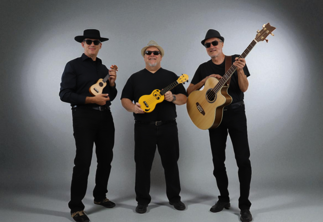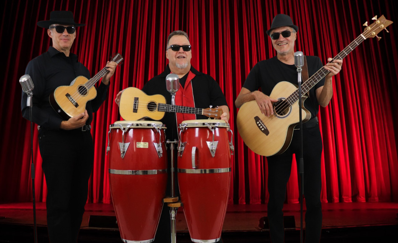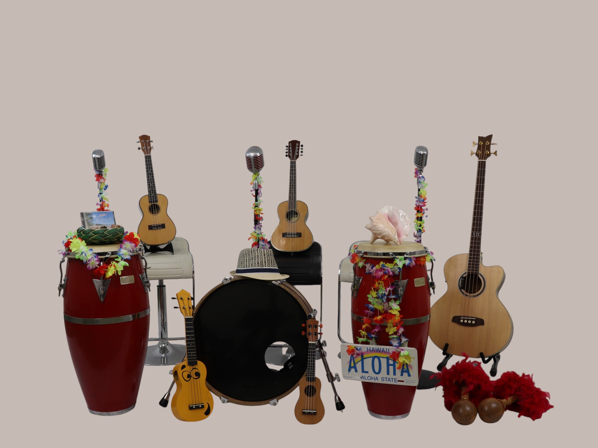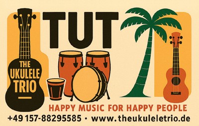Gesang, Schlagzeug, Congas, Bläst Muschel,… spielt R&R Ukulele seit einem Hawaii Urlaub 2010